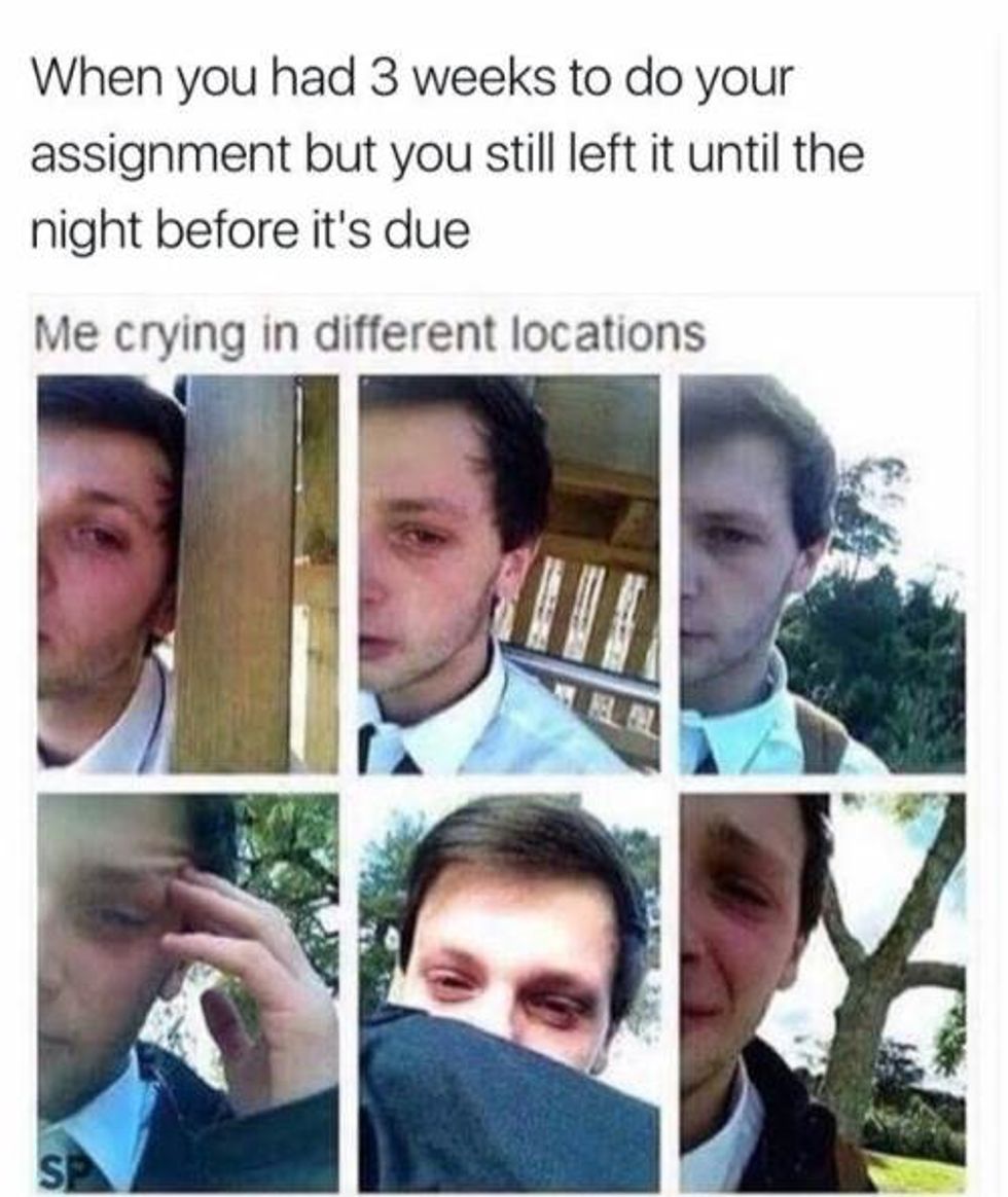If you don't wait until the last minute to do your assignments, then are you really a college student? Also, if you don't wait until the last minute to do your assignments, teach me how to be productive, please.