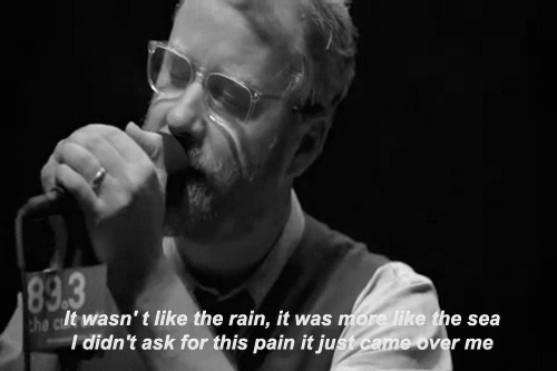 I have a Spotify playlist of The National songs and theres some rainy, gloomy days where I literally just lay on my couch and listen to them all on repeat. Depression sucks and you don't choose to feel that way. The National just gets that.