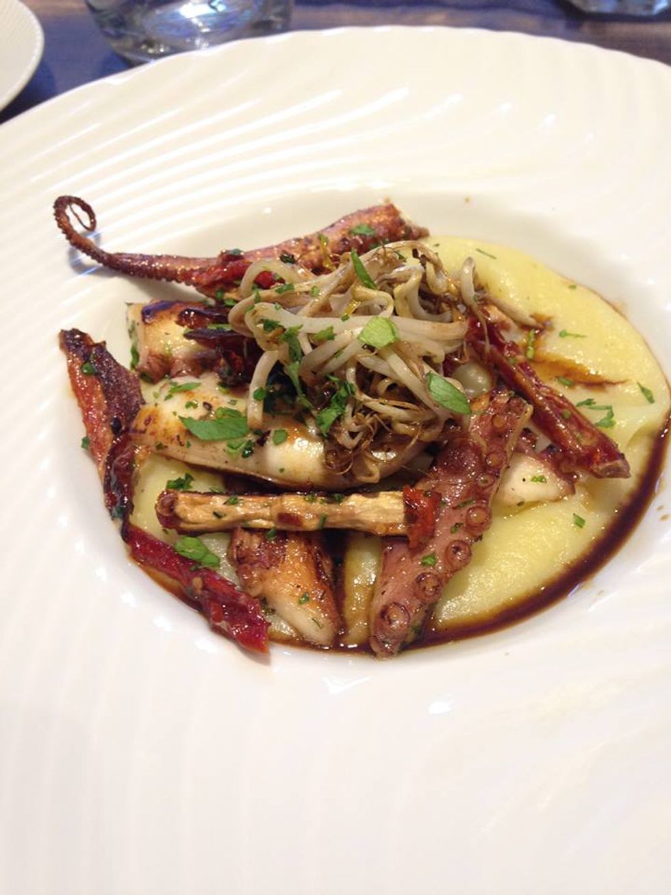 In Rome, I went to this cute little restaurant next to my hotel called Oscar's. They had pasta and risotto, but you don't wanna be caught up in the same thing every day. Instead, I decided to try their grilled octopus with pureed potatoes and bean spouts.. it was delicious.