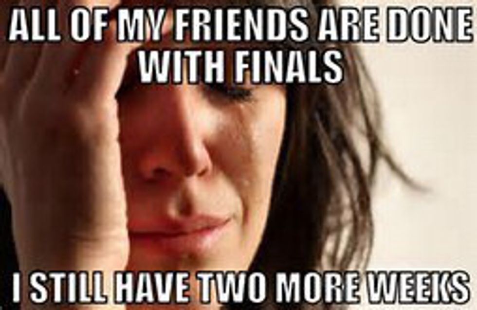 Finals week is right around the corner and with dead week coming up, students are already piling up in the library and drinking excessive amounts of caffeine. All study rooms have been reserved and everyone is pretty much stressed out. Here are some of the things we might think of during finals week.