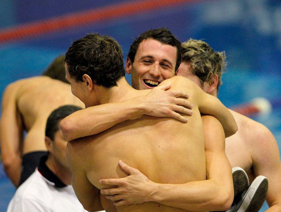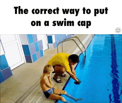 3. Experimenting with the swim caps...stretching to see how far they'll go, filling them with water and flinging them, and most importantly, finding someone on the team who can put yours on you the best.