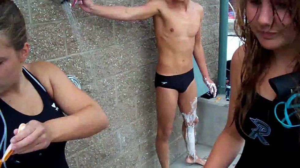 15. Getting out of the water and sprinting to the showers, trying not to step in any of the puddles that have formed along the concrete of the pool. You don't know what's in there...nobody does...