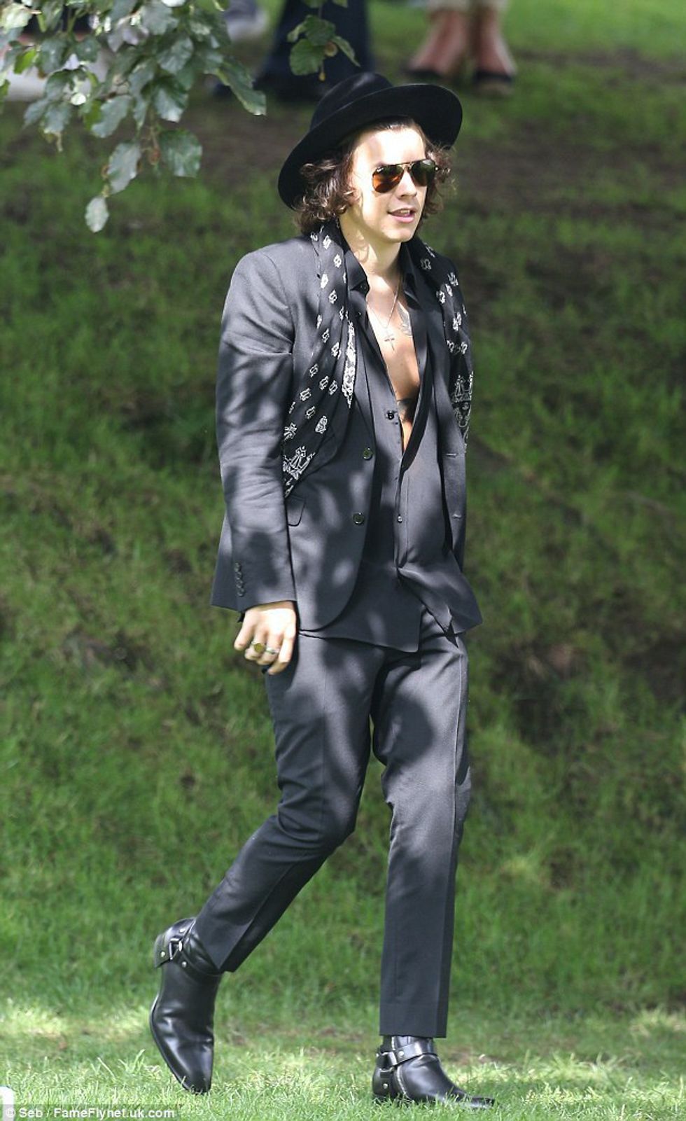 The wedding of band member Louis Tomlinson's mother presented the perfect opportunity for Styles to show off his exquisite taste. He wore all black with a hat and patterned scarf that showcased his true style.