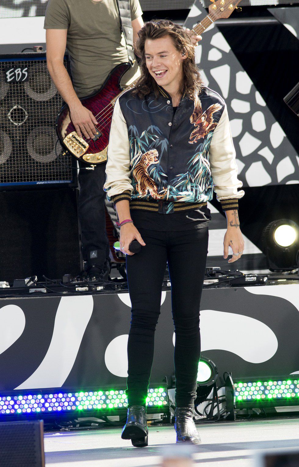 One Direction performed on Good Morning America in August of 2015, and Styles had one of his boldest fashion statements yet. He performed on the show wearing a YSL baseball jacket that probably costs more than you can imagine.