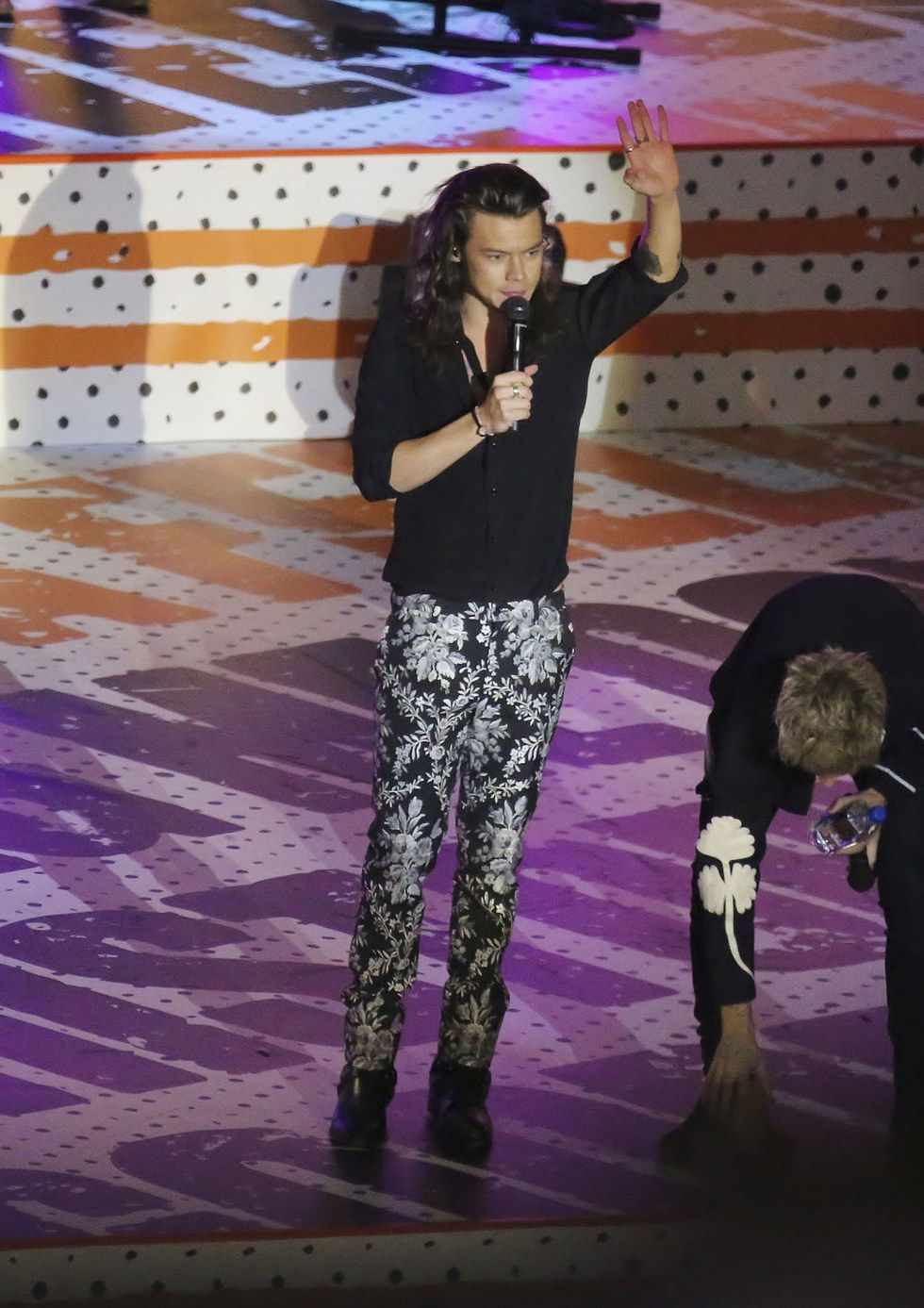 On Jimmy Kimmel Live, Styles took one of his biggest fashion risks by wearing a pair of floral printed pants.
