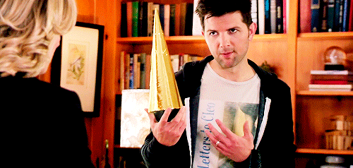 For their anniversary, Ben is determined to surprise Leslie — who, of course, is busy with official Parks/City Council business. The next day, Leslie surprises Ben with a giant Game of Thrones "Iron Throne" and he makes the face pictured above.