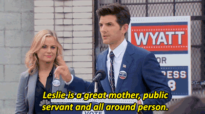 During Ben's 2018 Congressional campaign, Leslie takes a lot of heat. Like the great husband he is, Ben stands up for her and allows her to stand up for herself just as well. Everyone wants their S/O to stick up for them when they need it.