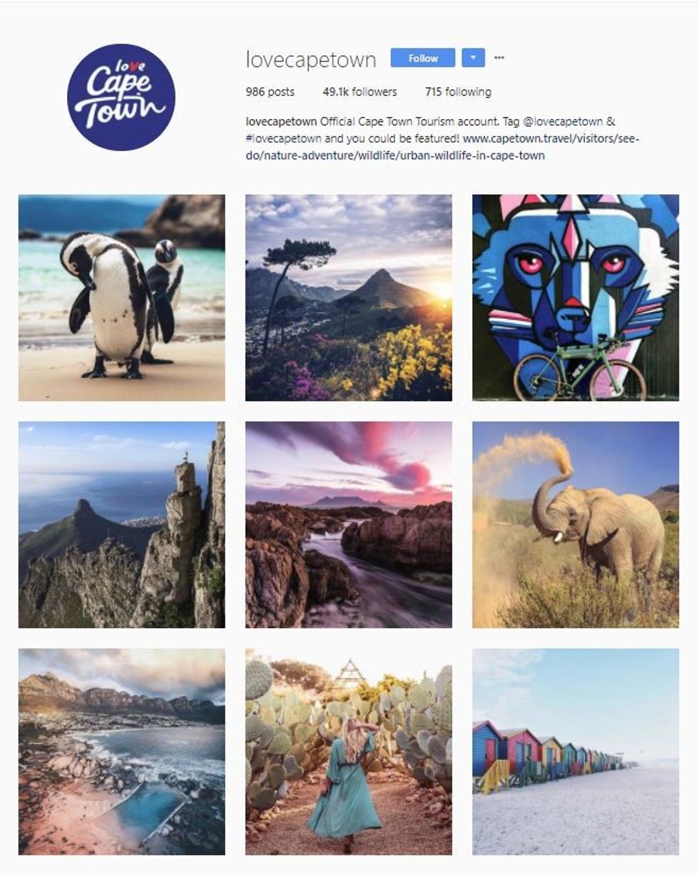 1. Cape Town, South Africa (@lovecapetown).