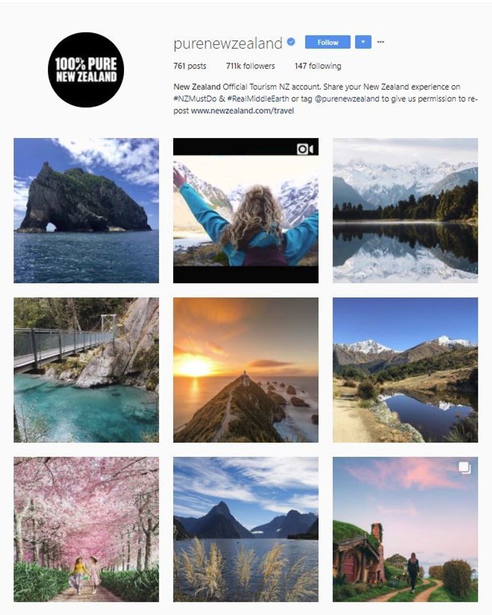5. New Zealand (@purenewzealand).