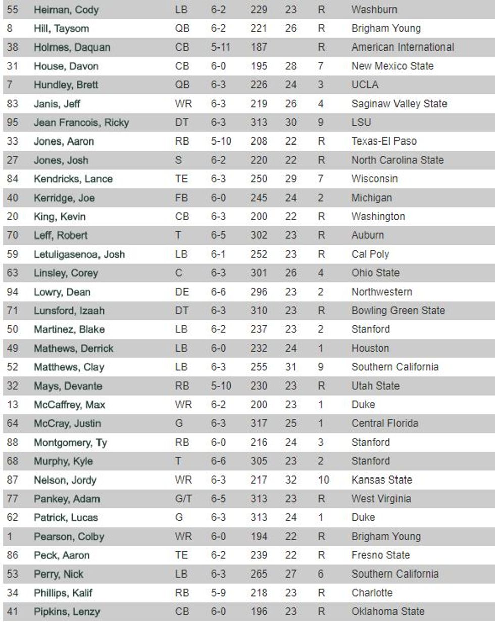 | 71 | Lunsford, Izaah | DT | 6-3 | 310 | 23 | R | Bowling Green State |