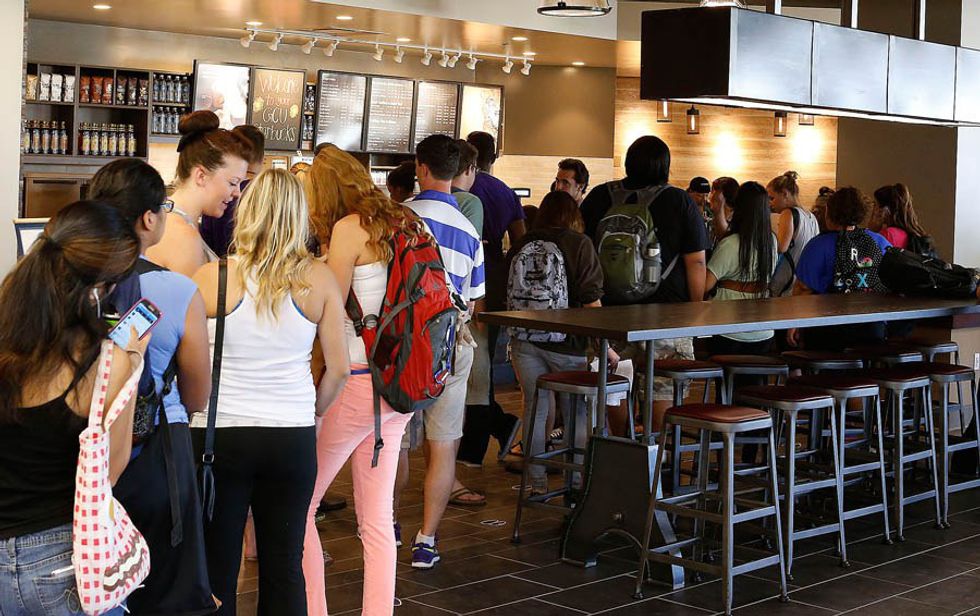Oh gosh, that line. If you want to get Starbucks before your afternoon class, you know you're going to end up being late. One time, it took me over an hour to get my drink and I was 30 minutes late to class... ridiculous, but completely worth that refreshing grande caramel macchiato in that dull lecture hall.