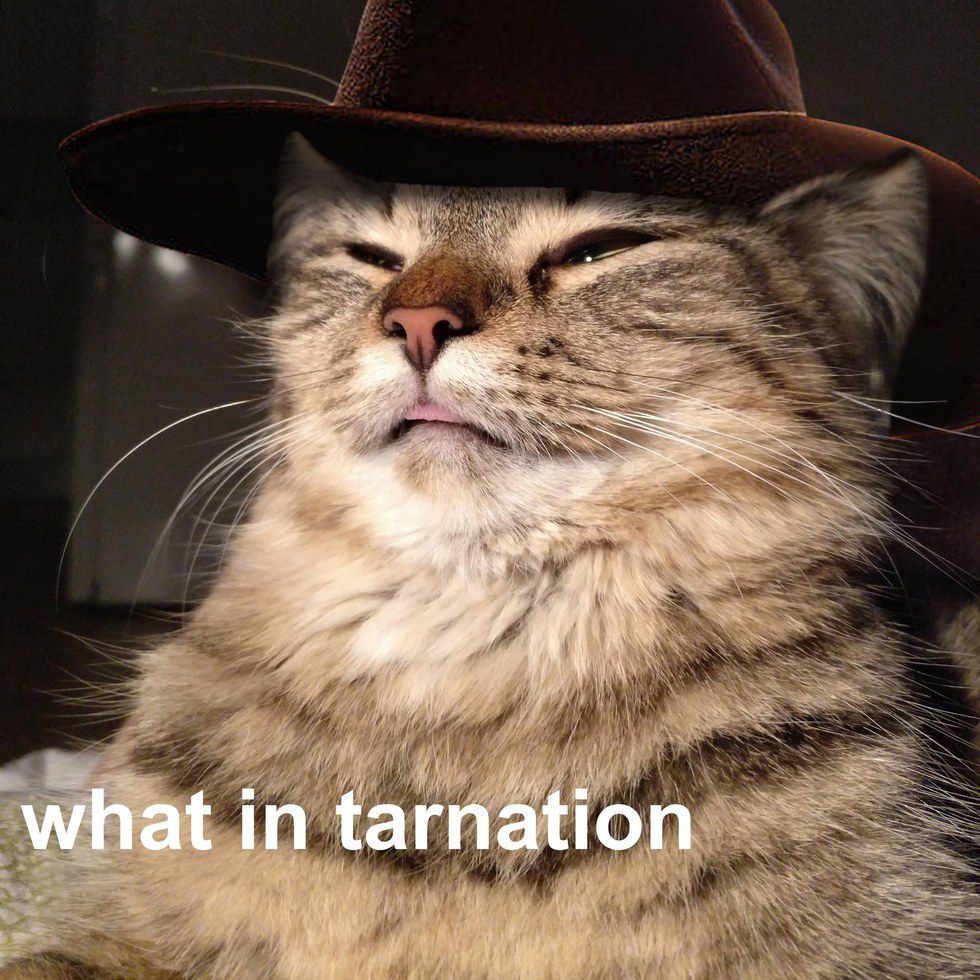 Here is the basis of the meme. Pretty simple, right? A cowboy hat and "what in tarnation." Then the internet took hold and transformed this into something even more beautiful.