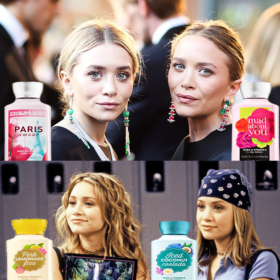 It's impossible to pick just one era of the Olsen twins. I imagine that during Full House and while they starred in their own movies they wore Coconut Coolada and Pink Lemonade Fizz (obviously). Now, they wear way more sophisticated fragrances like Paris and Mad About You.