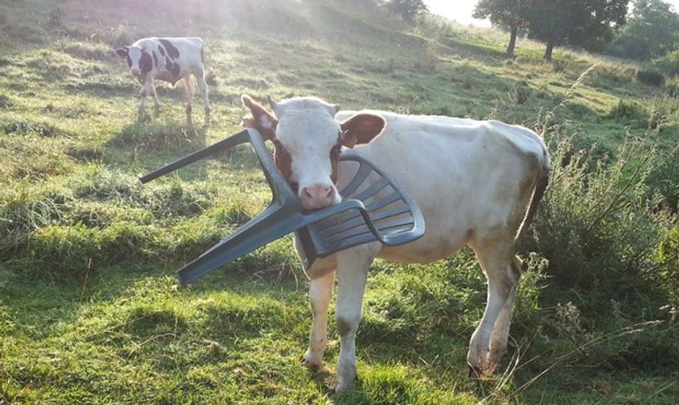 18. ...and finally, this cow, who is just ecstatic that, for once, someone else is the laughing stock of the farm.