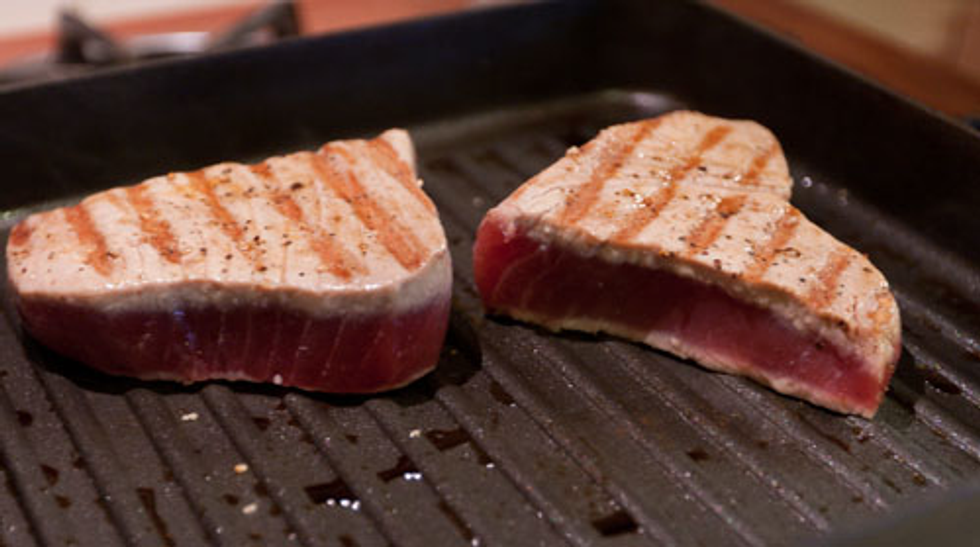 13. Tuna, yellowfin, cooked, three oz