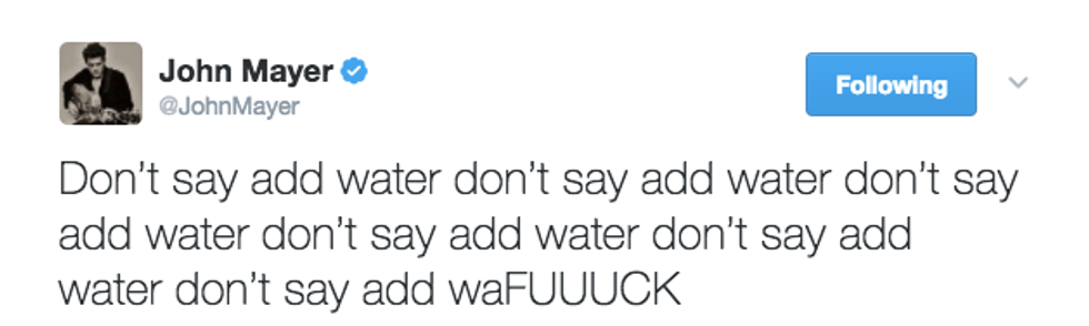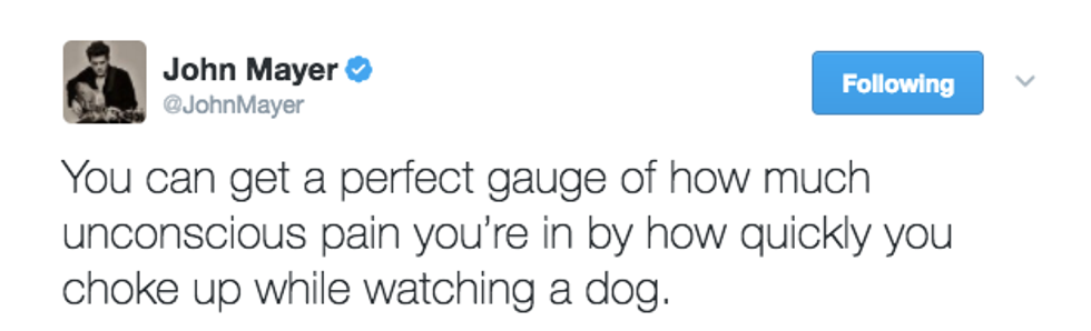 John Mayer's music career is back and better than ever, but even more noticeable these days is his revamped Twitter account. His lyrics are soulful and heartbreaking but his tweets are anything but. Towards the end of 2016, Mayer started to get back into the Twitter game, and if you don't already follow him, after reading these tweets you'll want to immediately.
