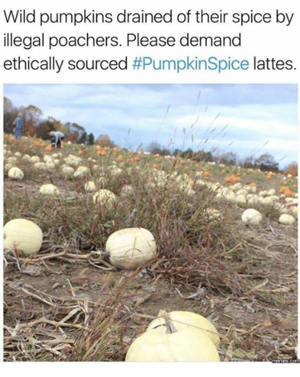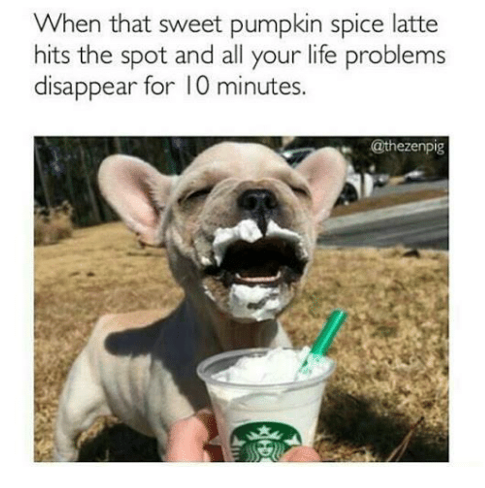 I am one myself and I readily admit to it. So to gear up for Halloween and pumpkin spice season, here are eighteen pumpkin spice memes to give you a giggle and hold you over until it's time for your next hit of PS.
