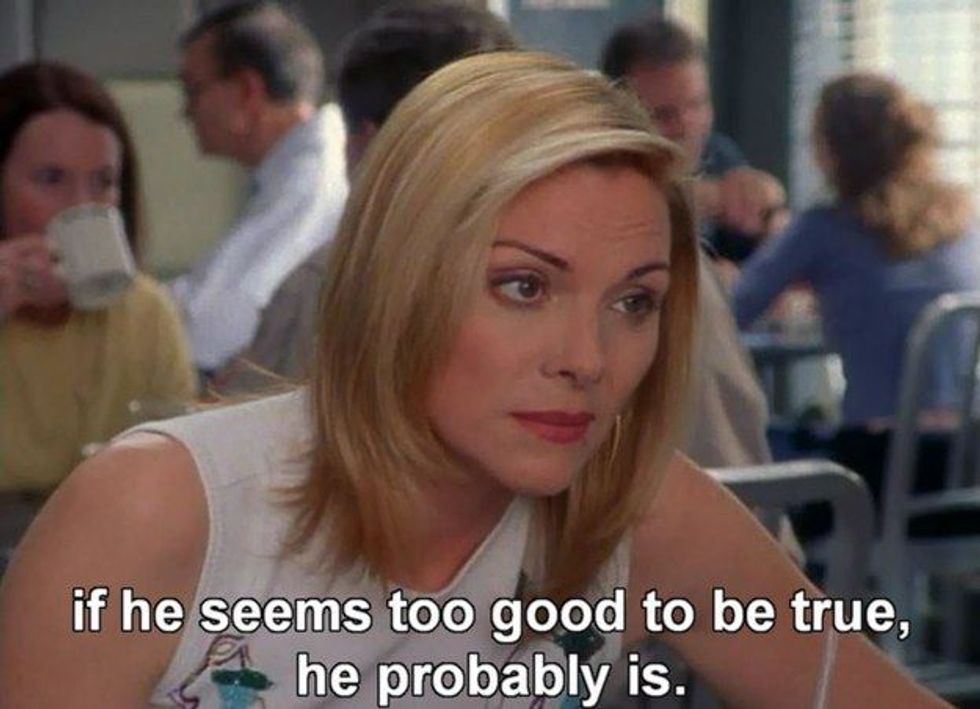 She'll tell you that many people know how to play the game, but it's up to you to challenge your ignorance and look beyond the earth-shattering sex, grade A humor, and perfectly chiseled jawline. Everyone is flawed, so the better they are at hiding it, the faster you should run.