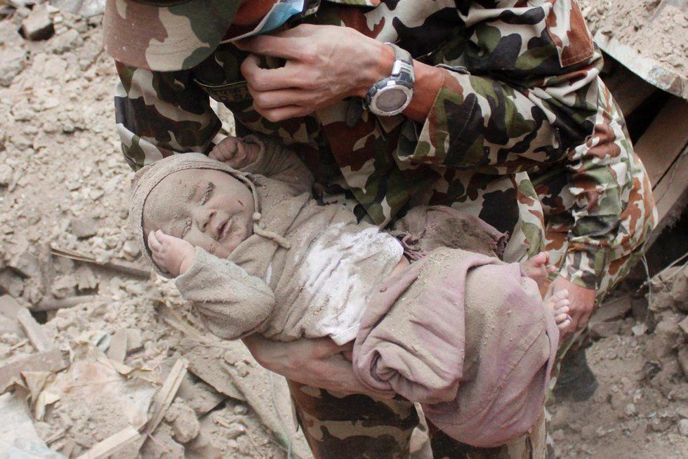 2. This photo of a Nepalese Army soldier rescuing a living baby 22 hours after the Nepal Earthquake