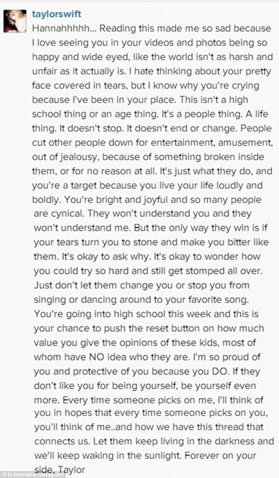 5. Taylor Swift personally reaches out to a fan that was being bullied on social media and offers her inspiring advice