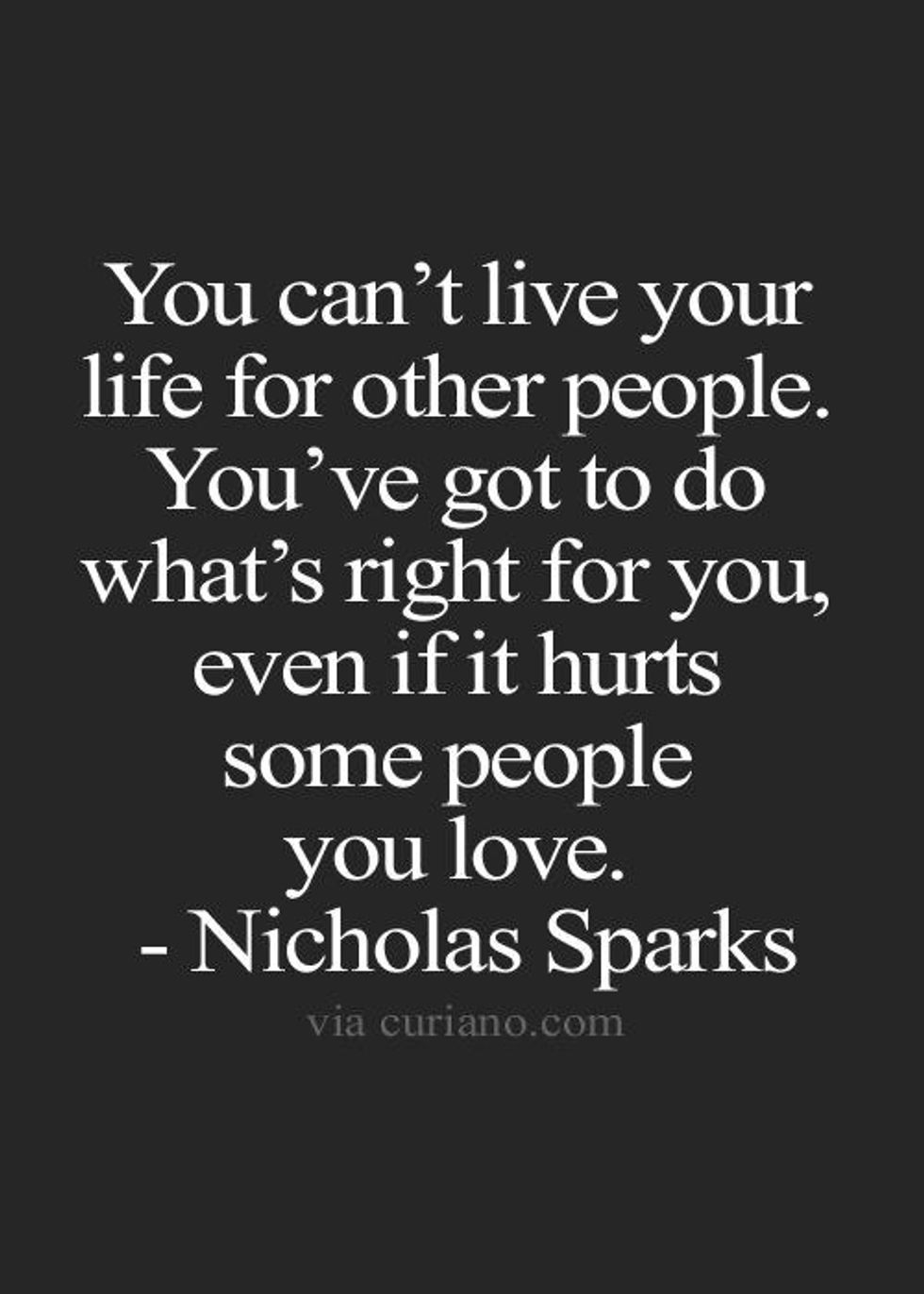 2. "You can't live your life for other people. You've got to do what's right for you, even if it hurts some people you love." – Nicholas Sparks