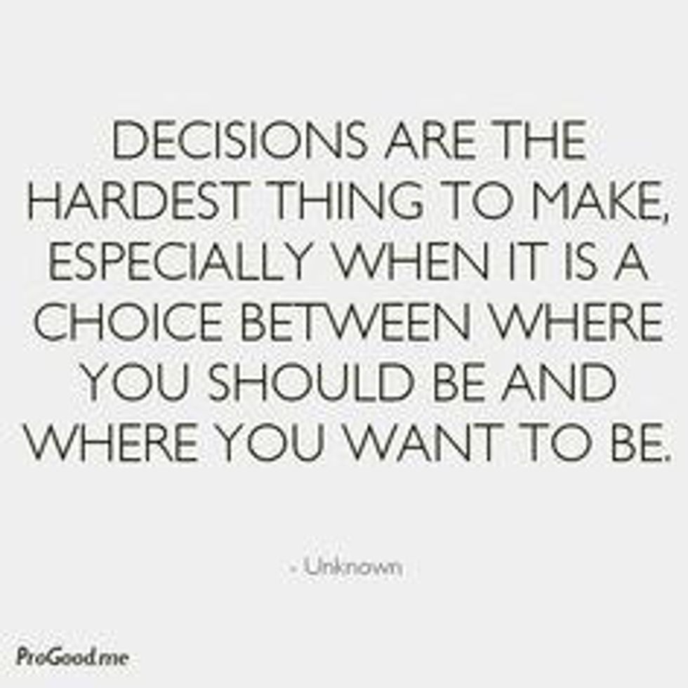 3. "Decisions are the hardest thing to make, especially when it is a choice between where you should be and where you want to be."