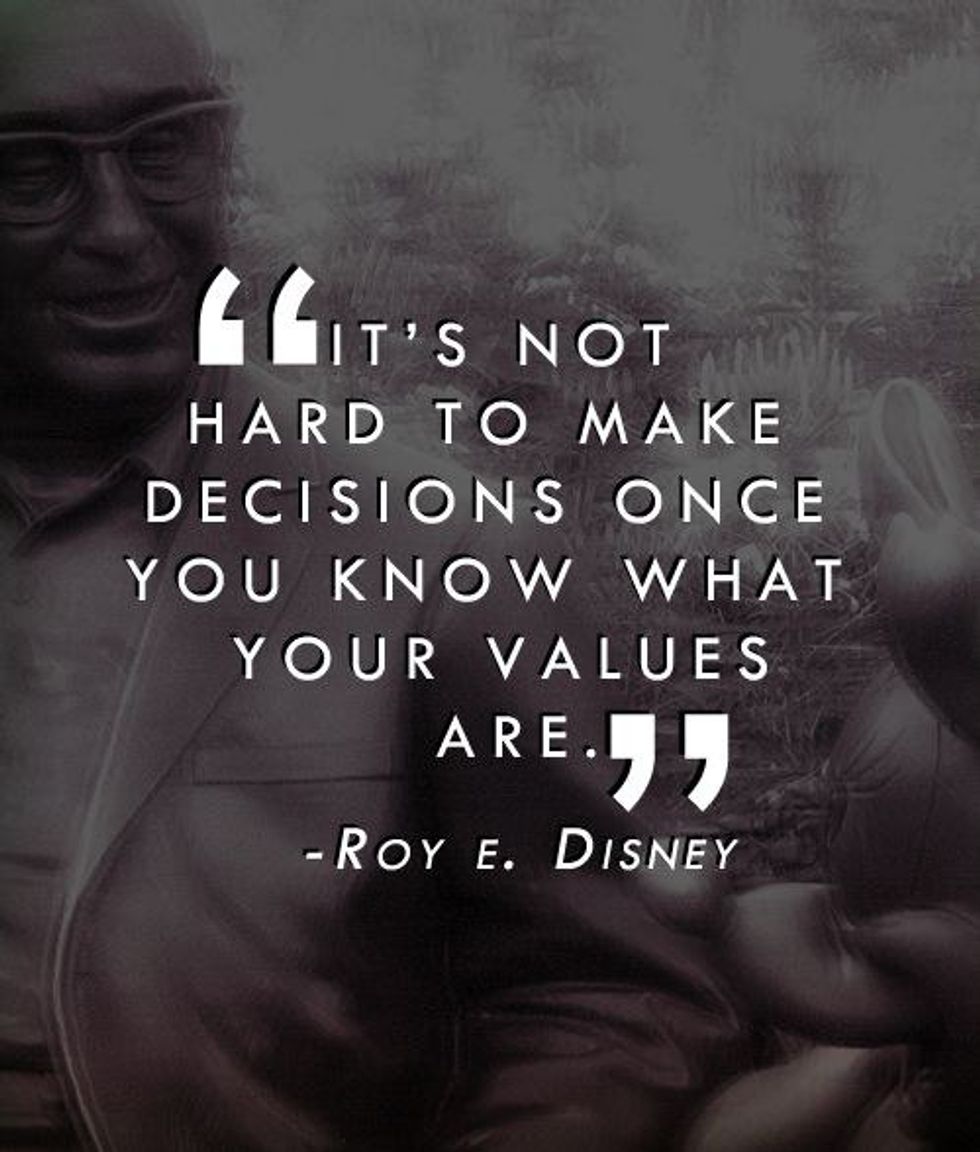 10. "It's not hard to make decisions once you know what your values are." – Roy E. Disney