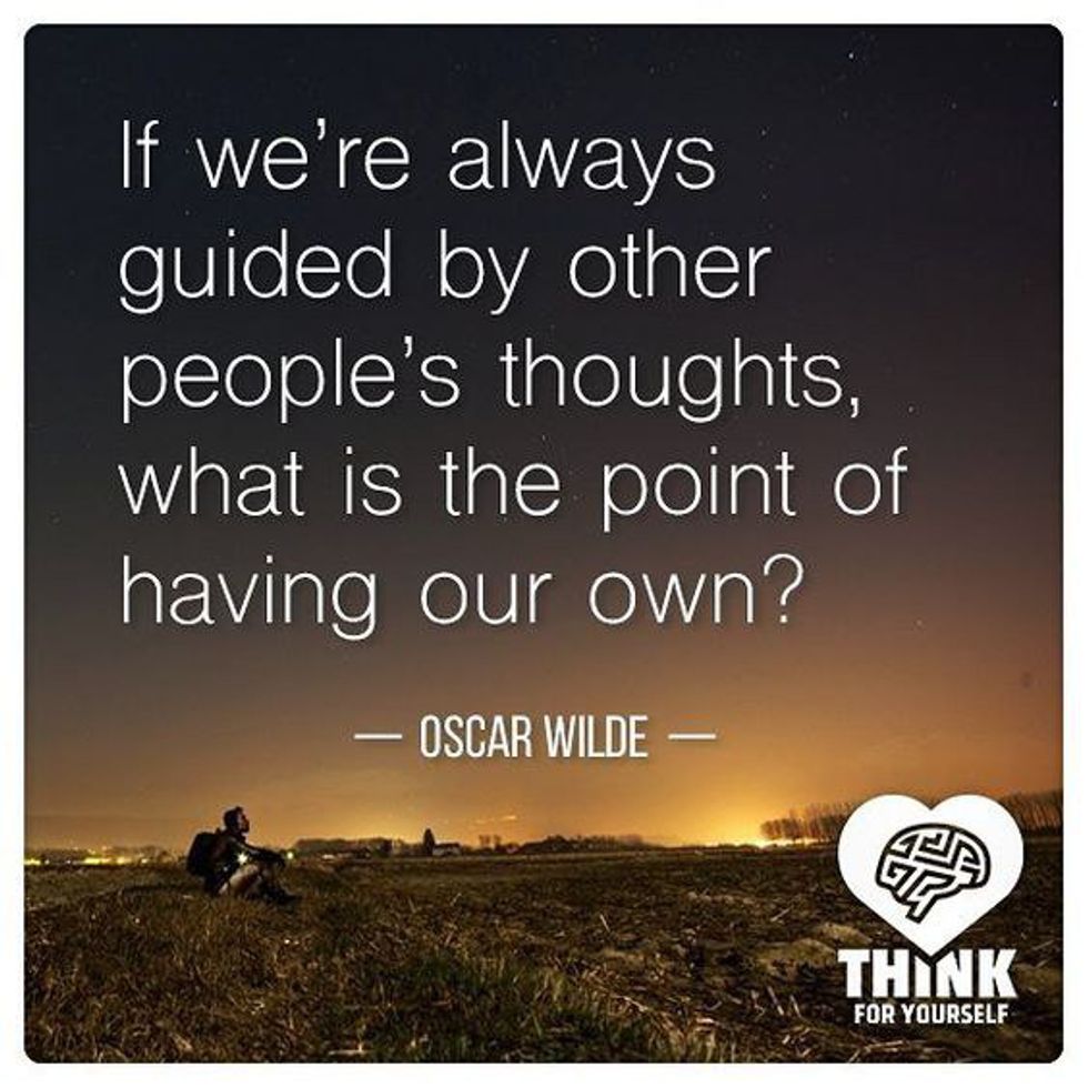 13. "If we're always guided by other people's thoughts, what is the point of having our own?" – Oscar Wilde