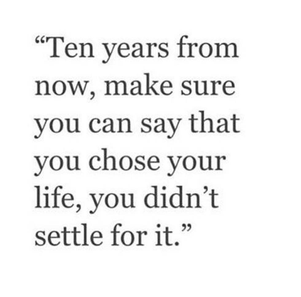 16. "Ten years from now, make sure you can say that you chose your life, you didn't settle for it."