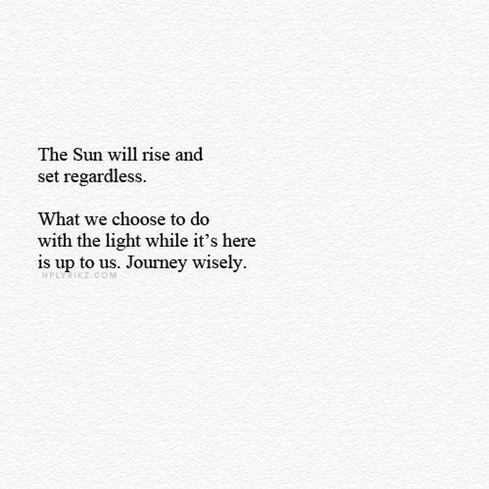 17. "The sun will rise and set regardless. What we choose to do with the light while it's here is up to us. Journey wisely."