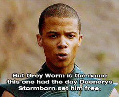 Once a slave soldier, he now serves by choice. He knows his men, understands the terms of the battlefield, and where his priorities and loyalties lie. With a tortured past and scarred memories, can he truly uncover his feelings, become vulnerable, and be comfortable in his own skin? All in all Grey Worm keeps Daenerys' army alive and strives with power.