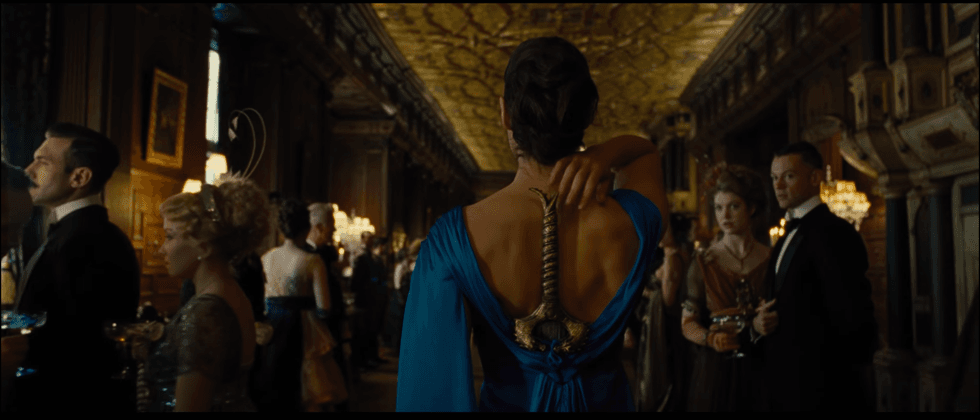 I mean, really! But honestly, who cares; she looks ravishing in that dress, and maybe the patrons thought the sword was an adornment on the gown? In the "Wonder Woman" universe, anything is possible.