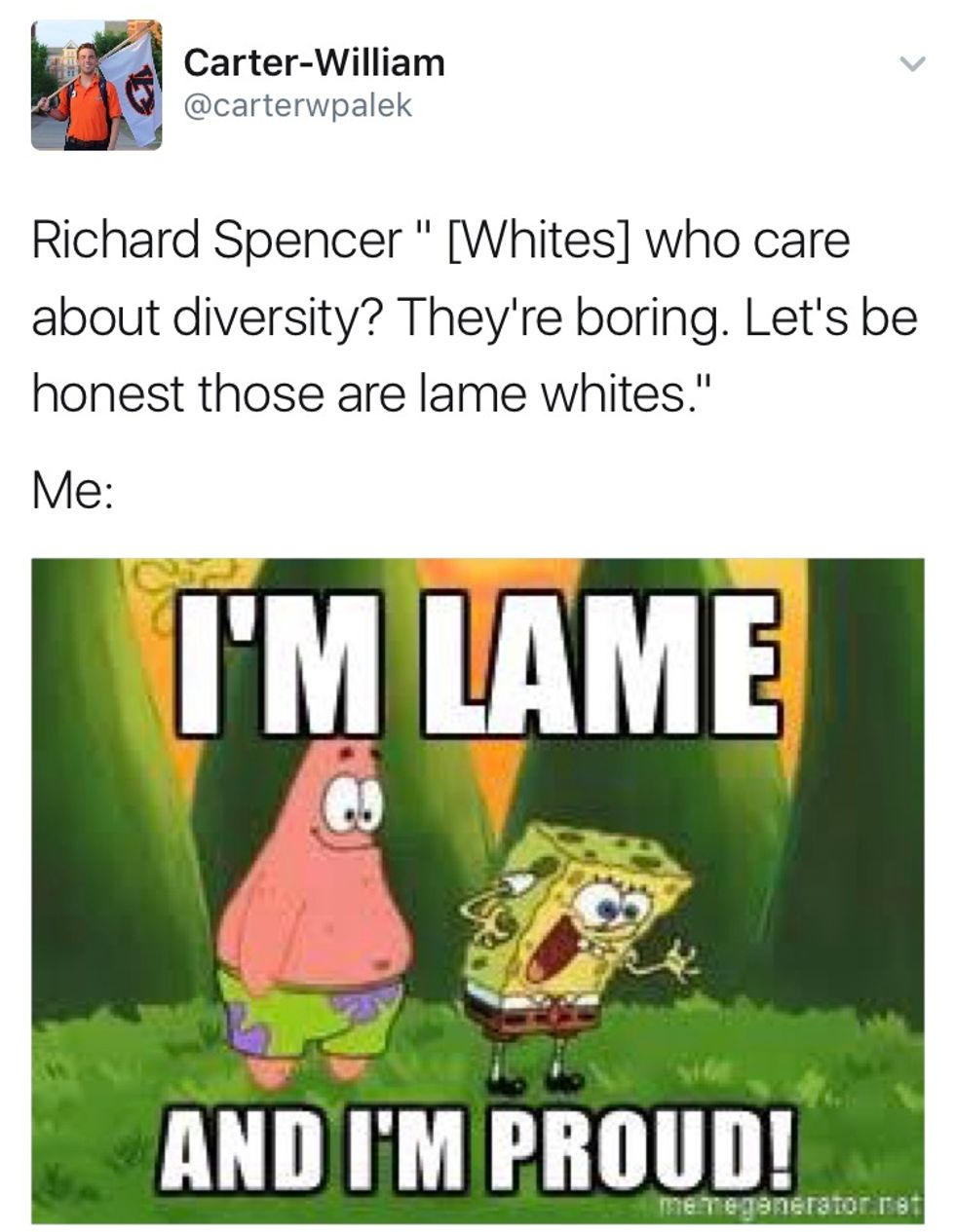 Richard Spencer " [Whites] who care about diversity? They're boring. Let's be honest those are lame whites."