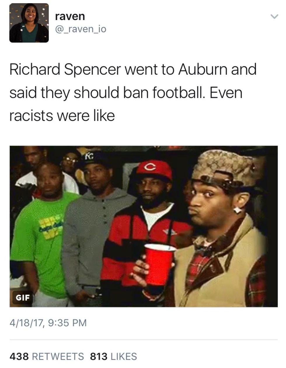 Richard Spencer went to Auburn and said they should ban football. Even racists were like pic.twitter.com/sg3M0PZL9F