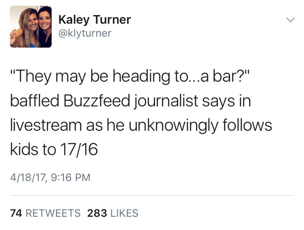 "They may be heading to...a bar?" baffled Buzzfeed journalist says in livestream as he unknowingly follows kids to 17/16