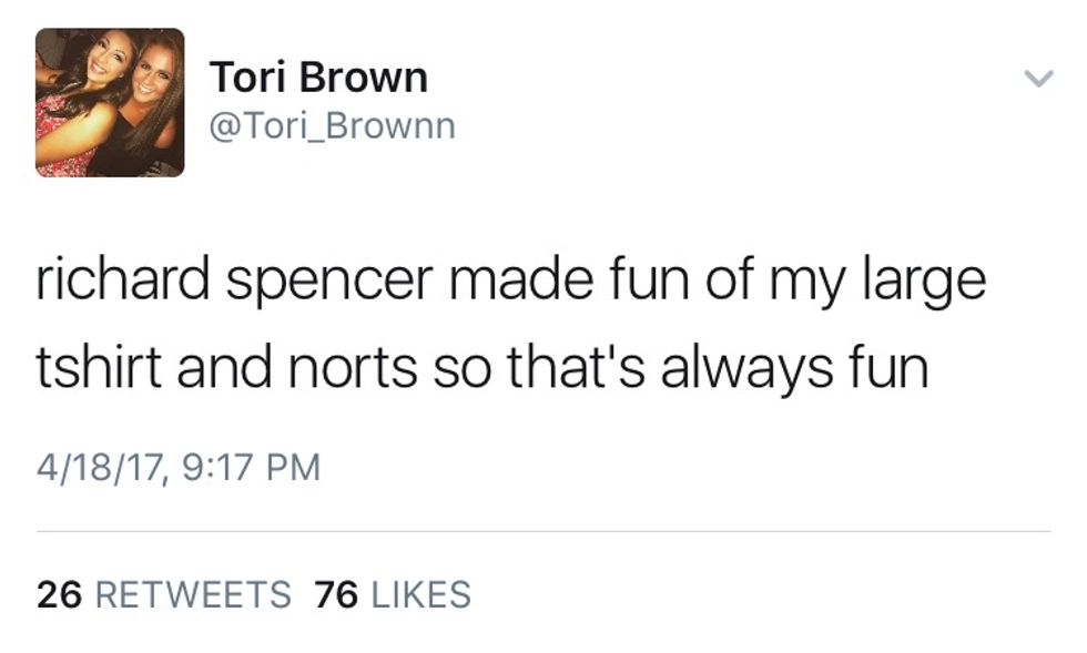 richard spencer made fun of my large tshirt and norts so that's always fun