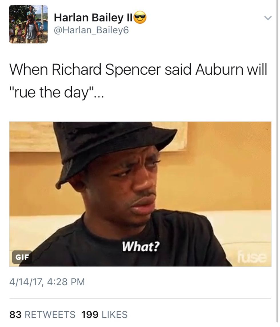 When Richard Spencer said Auburn will "rue the day"... pic.twitter.com/LzEj5BDWtU