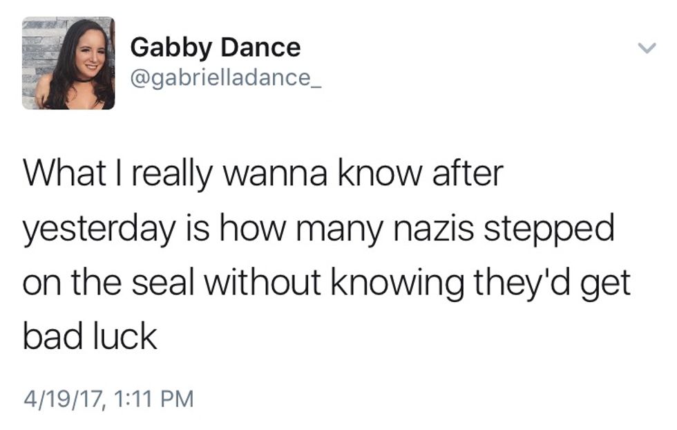 What I really wanna know after yesterday is how many nazis stepped on the seal without knowing they'd get bad luck