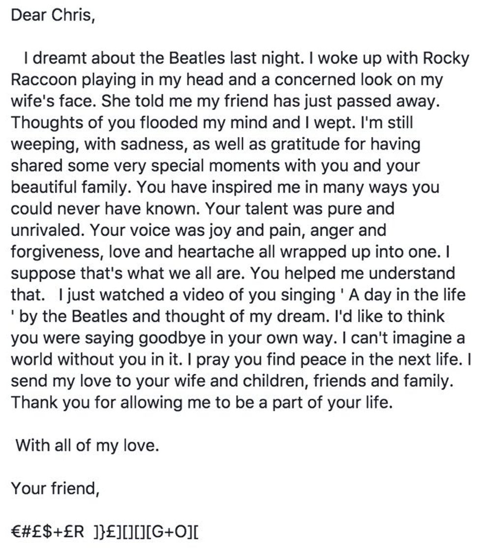 5. His open letter to Chris Cornell.