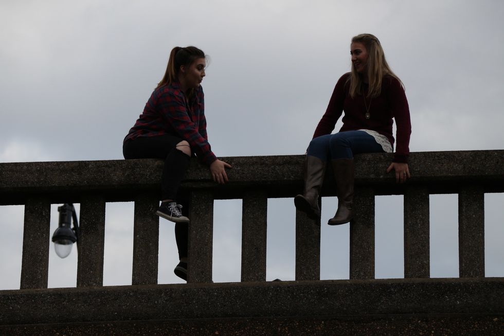 Abbey and I love to go to downtown Birmingham and explore, and this day we took my new camera, and shot some of the fun we had. This picture was taken by our good friend, Braxton, while we climbed over the side of a bridge to sit on the edge, but we ended up chickening out.
