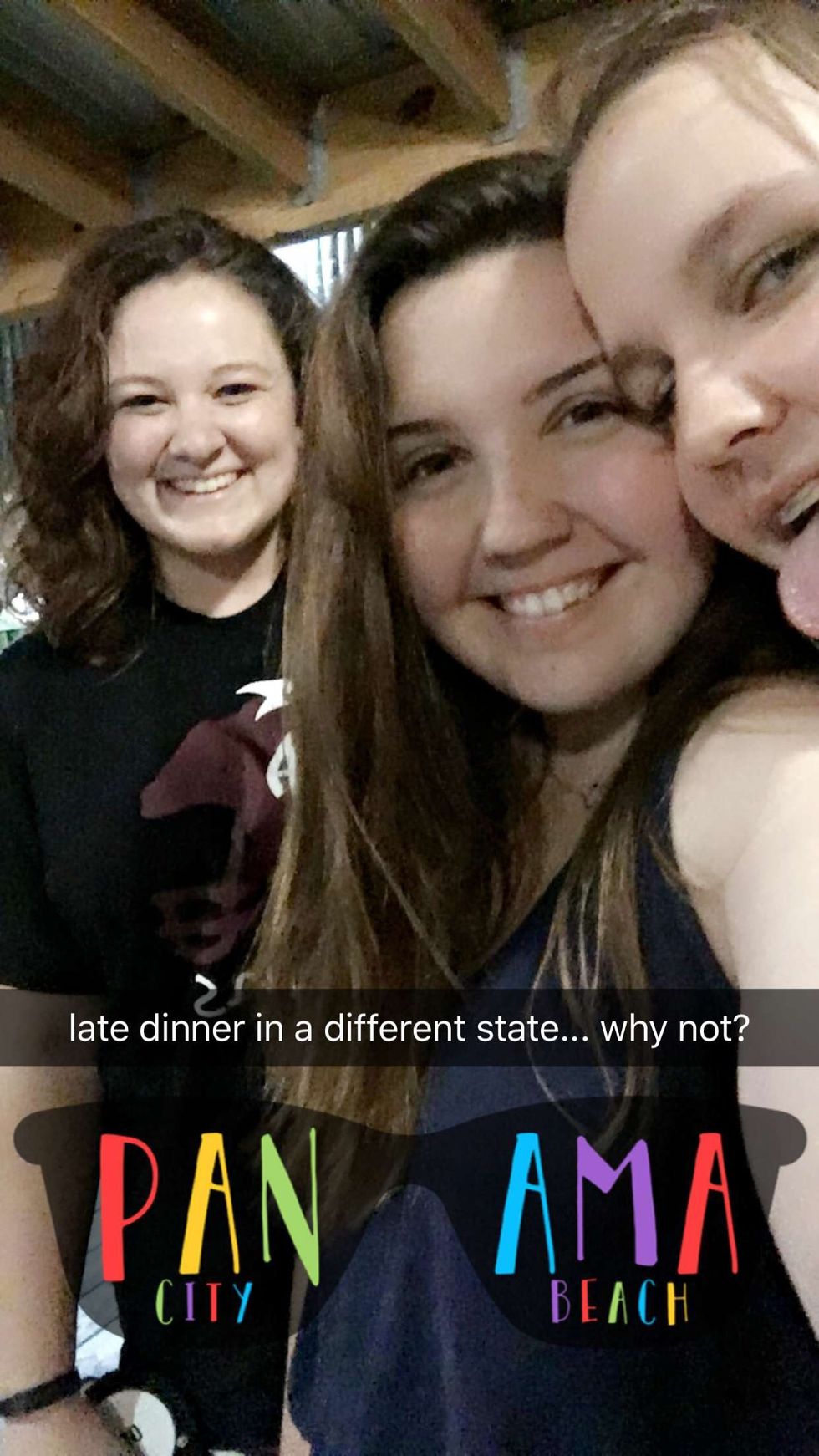 Troy is about two and a half hours from Panama City Beach in Florida, and my friends Mallory and Catherine actually agreed to make a quick trip only to eat dinner on the beach. None of us told our parents until we got there, in case they got mad, but they were pretty okay with it.