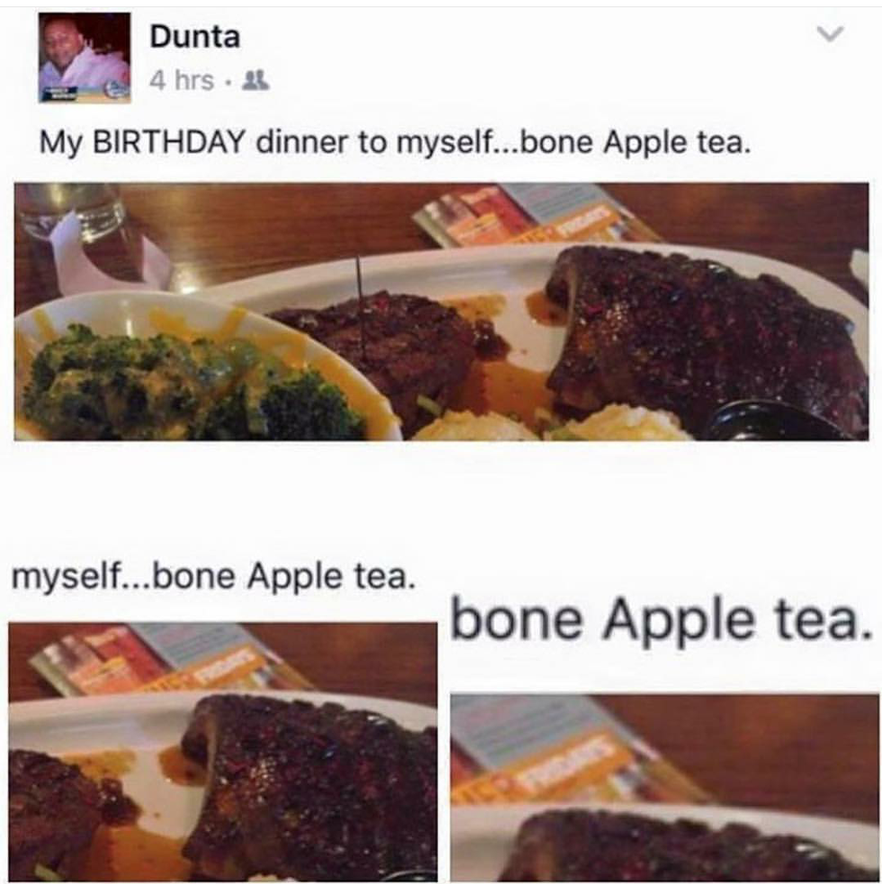Bone apple tea, bone app the teeth, blonde amputee, bone beat the meat...