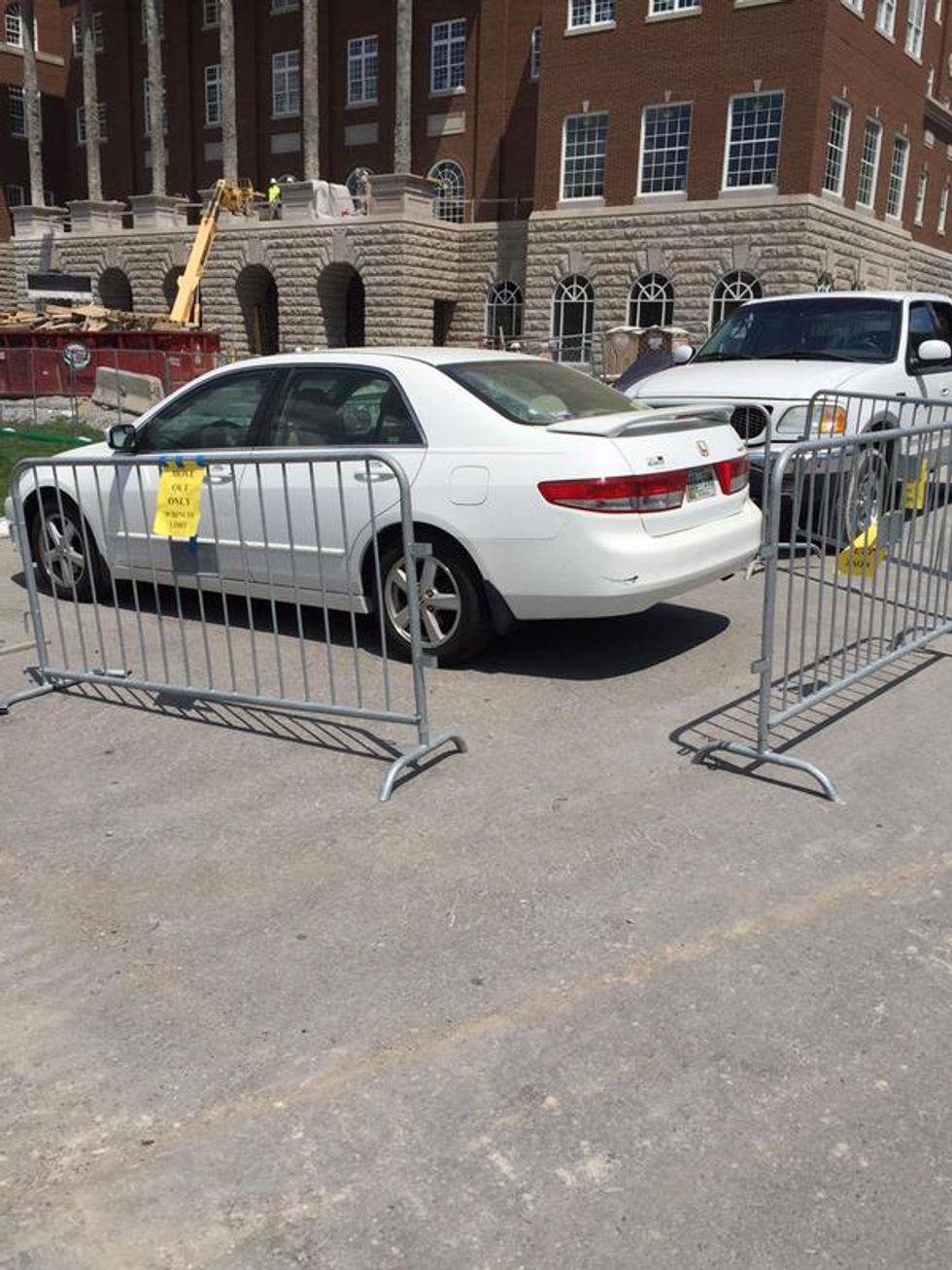 There are strict rules on where you can and where you can’t park on campus. Whatever you do, don’t violate them or you'll end up like this guy. Completely necessary, B-PO.