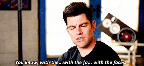 7. Schmidt is not afraid to tell his friends when he's surprised.
