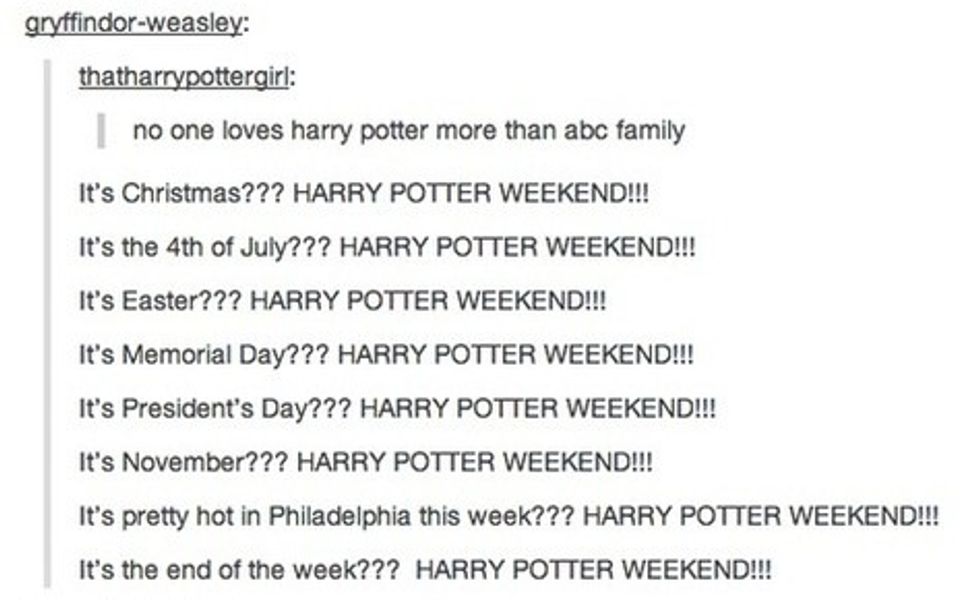 6. And even though you have all the movies, you still turn on Freeform and watch Harry Potter Weekend.