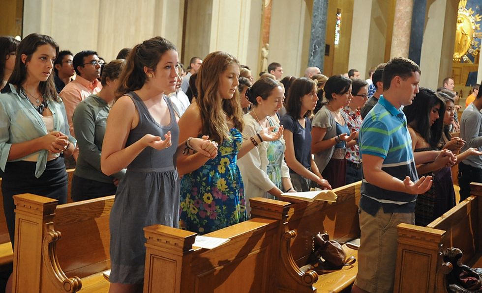 Every Friday was mass day, and everyone had to be in proper uniform. You might have loved mass days because it meant missing an hour of class. Sometimes, we went twice a week if there was a holy day of obligation, such as Ash Wednesday. You might have had a favorite "church" song. I know I did. Apparently, hymns are more ear-wormy than you think. I don't know how many times I've been going through life singing "Lift High the Cross" or "On Eagle's Wings." You might have felt a tad bit special if you got picked to read a part from scripture, serve, or take up the gifts. You might have even gotten butterflies sitting next to the person you liked because you got to hold his/her hand during the "Our Father."