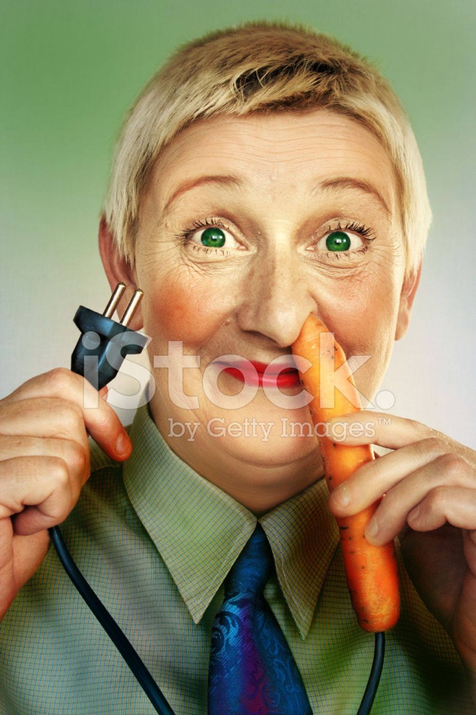 Where is she trying to plug the other end into? And why? What's the point of having an electric carrot in the first place?