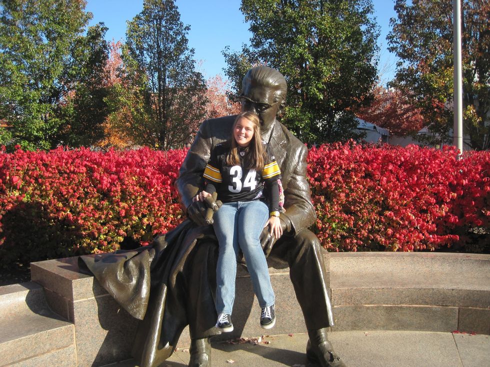 7. You have at least one awkward picture in front of a statue or Steelers memorabilia.