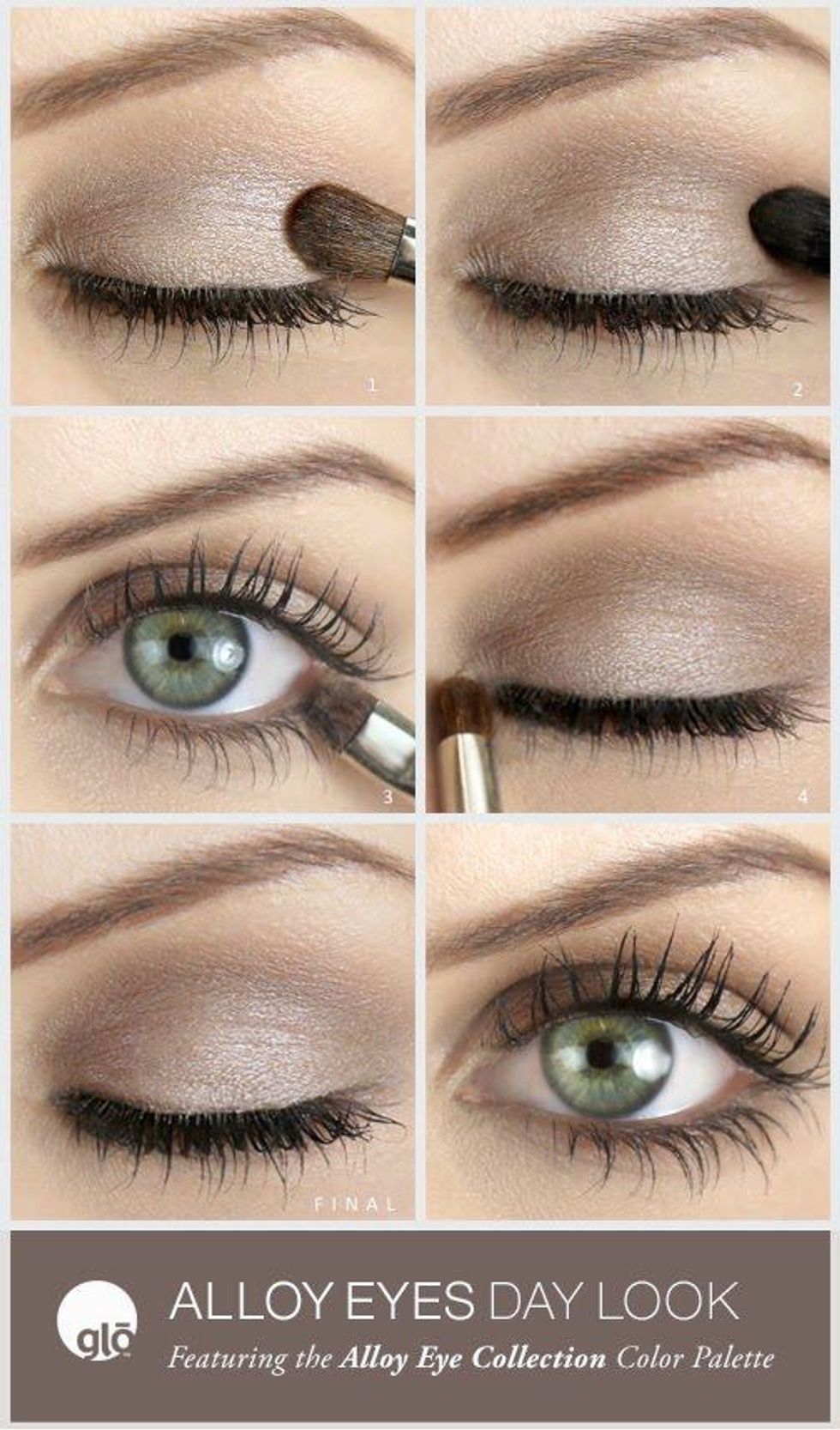 Eye-shadow is another important element in this makeup routine (although most days I just use eyeliner) and it's quite simple. Because this style brings focus to the eyes in a more natural way, only one or two colors were used on the eye. One shadow color was used for everyday looks, while two were used for "evening" looks. Bright and unnatural colors were not often used, so stick to more neutral colors, and always ones that compliment your eye color.