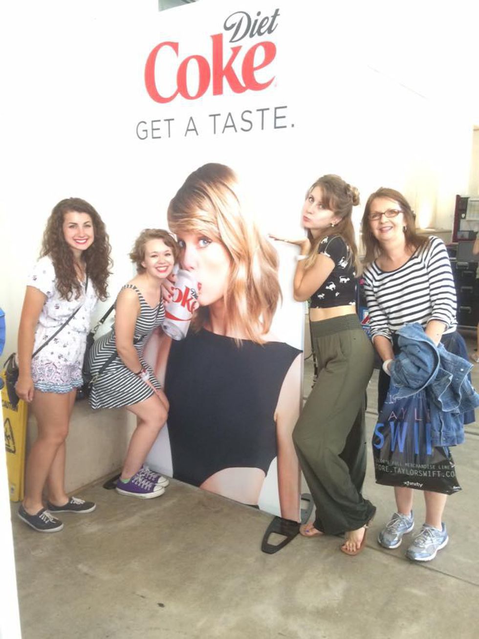 On July 18 and 19, Taylor Swift brought her 1989 World Tour to sold-out Soldier Field in Chicago. I was lucky enough to attend the first night, and it was incredible beyond words. Chi-town, as Taylor affectionately nicknamed the city, was overflowing with fangirls. Teenage girls in rompers donning red lipstick walked Michigan Avenue, as well as young girls and their mothers. I got to the stadium a little after 4 o'clock, bought my tour shirt, and simply people-watched. Fans waited patiently in line all day to be let into Soldier Field, and when the gates opened at 5 p.m., it was Swiftie madness. Taylor has partnerships with Diet Coke and Keds, both of which had large booths located inside Soldier Field.